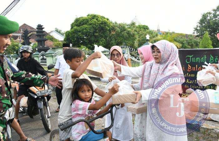 Setidaknya ada ratusan bingkisan takjil gratis untuk buka puasa yang habis dibagikan oleh anggota Persit KCK Cab XVI Dim Ponorogo kepada para pengguna jalan raya depan Makodim 0802/Ponorogo termasuk para pengendara mobil, motor, bahkan tukang becak maupun pejalan kaki tak luput dari aksi bagi bagi takjil gratis tersebut.