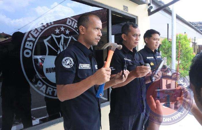 Anggota gabungan kemudian menggeledah sekelompok anak muda dan menemukan barang bukti berupa ruyung besi, batu, palu dan belati.