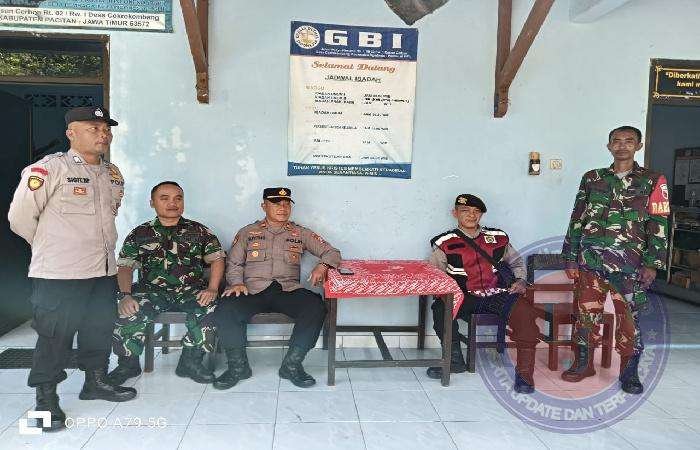 PACITAN lintasjatimnews.com – Babinsa Koramil 0801/07 Ngadirojo Kodim 0801/Pacitan bersama pihak Kepolisian melaksanakan pengamanan kepada umat Kristiani dalam rangka ibadah Hari Wafatnya Isa Almasih, bertempat di Gereja Bethel Indonesia (GBI) Dusun Cerbon, Desa Cokrokembang, Kec. Ngadirojo Kab. Pacitan, Jumat (29/03/2024).