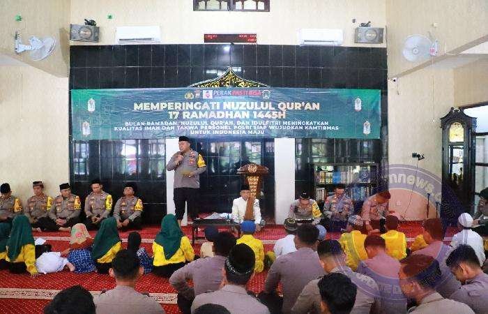“Nuzulul Quran merupakan momentum berharga yang memperingati turunnya wahyu pertama kepada junjungan kita, Nabi Muhammad SAW, yang membawa cahaya dan petunjuk bagi umat manusia.” ungkap Kapolres.