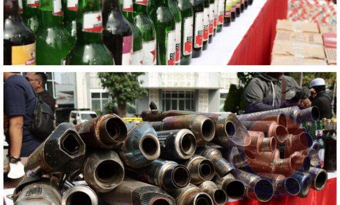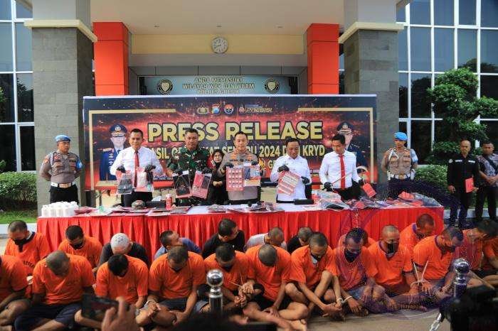 Ungkap kasus premanisme 5 tersangka yang diamankan, judi online sebanyak 14 tersangka yang diamankan. Kemudian minuman keras ada 72 tersangka, narkoba sebanyak 20 kasus dengan 30 tersangka, balap liar 52 kasus 52 pelanggar dan knalpot brong 50 kasus 50 pelanggar.