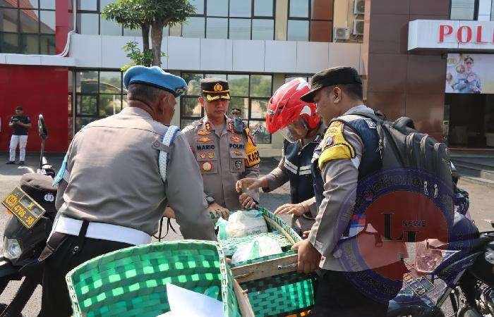 Kapolres AKBP Mario Prahatinto kepada awak media mengatakan, Beras zakat fitrah ini dari para anggota dan keluarga.