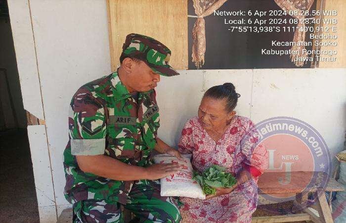 “ Alhamdulillah hari ini kami bisa menyerahkan zakat fitrah dari Keluarga Besar Kodim 0802/Ponorogo kepada warga yang berhak menerima di wilayah desa binaan kami, “ kata Serda Arif yang sehari – hari menjadi Babinsa Bedoho tersebut.