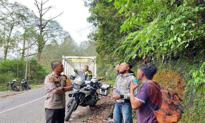 Ditengah pemantauan, Kapolres Mojokerto menyempatkan berdialog dengan pengendara kendaraan yang berhenti sejenak disekitar lokasi jalur ekstrem Mojokerto-Batu.