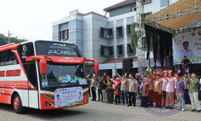 GRESIK lintasjatimnews.com – Pemerintah Kabupaten Gresik bersama Polres Gresik kembali menyelenggarakan Program Mudik Gratis dalam rangka Hari Raya Idul Fitri 1446 Hijriah tahun 2024. Sebanyak 18 bus diberangkatkan dari halaman Pemerintah Kabupaten Gresik dengan tujuan berbagai wilayah di Jawa Timur.Minggu(07-04-2024)