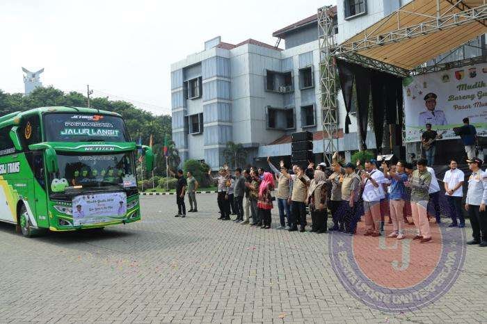 GRESIK lintasjatimnews.com – Pemerintah Kabupaten Gresik bersama Polres Gresik kembali menyelenggarakan Program Mudik Gratis dalam rangka Hari Raya Idul Fitri 1446 Hijriah tahun 2024. Sebanyak 18 bus diberangkatkan dari halaman Pemerintah Kabupaten Gresik dengan tujuan berbagai wilayah di Jawa Timur.Minggu(07-04-2024)