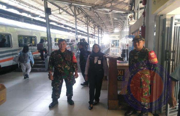 SURAKARTA lintasjatimnews.com – Guna meningkatkan keamanan pada obyek vital Stasiun Kereta Api stasiun solo Balapan menjelang H-2 perayaan hari raya Idul Fitri 1445 H tahun 2024, Babinsa Kelurahan Kestalan Koramil 02/Banjarsari Kodim 0735/Surakarta Serka Ikwan Nussofa dan Serda Supriyanto berkolaburasi dengan Polisi Pam Obvit dan Polsuska melaksanakan pengamanan pada Arus mudik lebaran di Stasiun Solo balapan Jalan Wolter Monginsidi No.112, Kestalan, Kecamatan Banjarsari, Senin (08/04/2024).