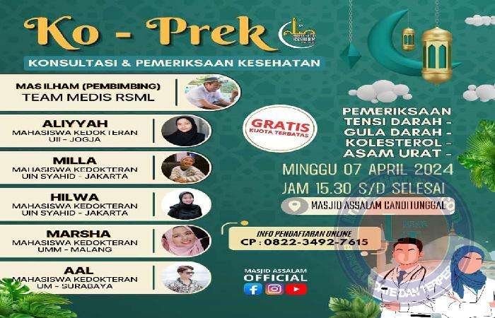 “Sejak awal antara Takmir masjid, Pimpinan Ranting Muhammadiyah dan Aisyiah telah bersepakat bahwa masjid assalam harus berfastabiqul Khoirot menjadi masjid yang memiliki nilai tambah selain kegiatan sholat berjamaah dan taklim, harus hadir sebagai masjid yang peduli,” pungkas pria yang berprofesi sebagai dosen ini
