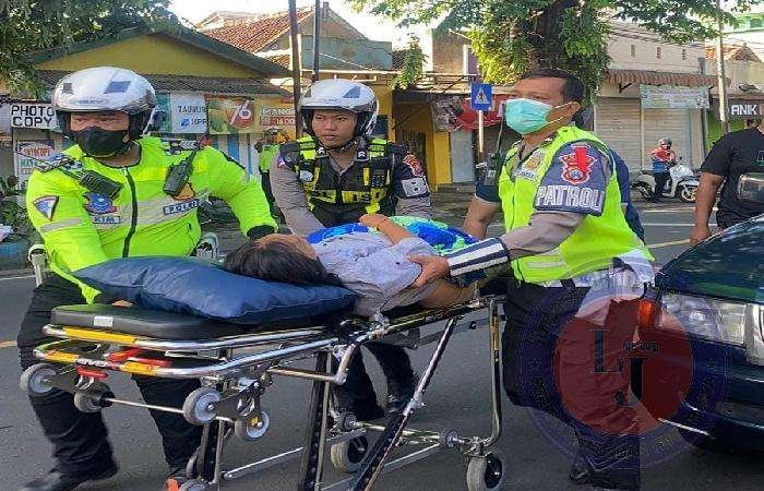 Dengan sigap, petugas kepolisian segera berkoordinasi dengan ambulance siaga PSC 110 untuk memberikan tindakan medis secepatnya.
