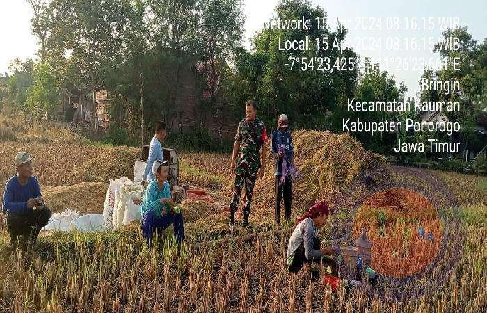 Seperti yang dilakukan Koptu Redik Mahanani anggota Koramil Tipe 0802/05 Kauman, Kodim 0802/Ponorogo yang hari ini melakukan pendampingan terhadap petani di wilayah desa binaan (Desa Bringin) Kecamatan Kauman Kabupaten Ponorogo yang mana sedang proses memanen padi vairietas Ciherang Masa Tanam MP (Musim Penghujan).