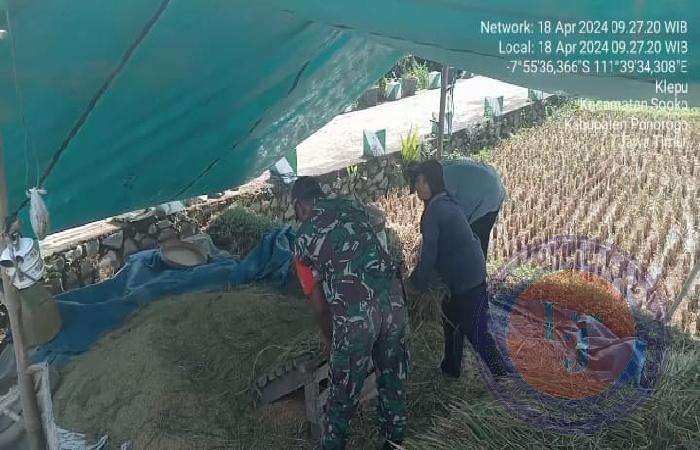 Musim Panen, Babinsa Kodim 0802/Ponorogo Dampingi dan Bantu para Petani Panen Padi