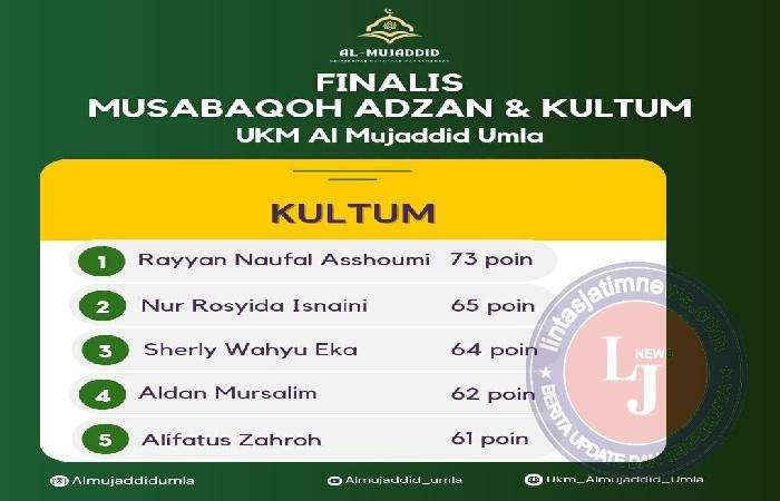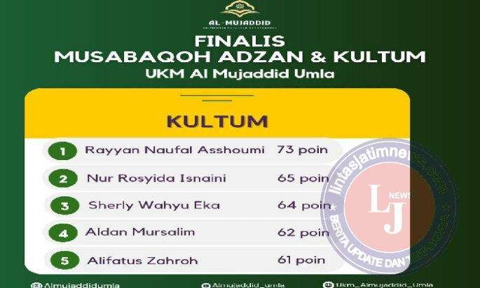 Berikut finalis Musabaqoh Adzan dan Kultum UKM Al Mujaddid Umla tahun 2024.