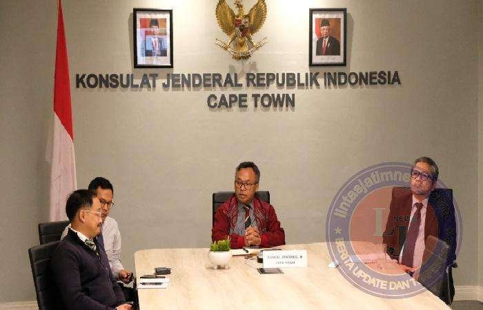 SURABAYA lintasjatimnews.com – Dalam rangka memperkuat tali silaturahmi dan membangun sinergitas misi diplomasi RI di wilayah akreditasi dengan insan pers di Jawa Timur (Jatim), KJRI Cape Town dan Persatuan Wartawan Indonesia (PWI) menyelenggarakan acara perkenalan dan silaturahmi secara virtual, Selasa (23/04/2024).