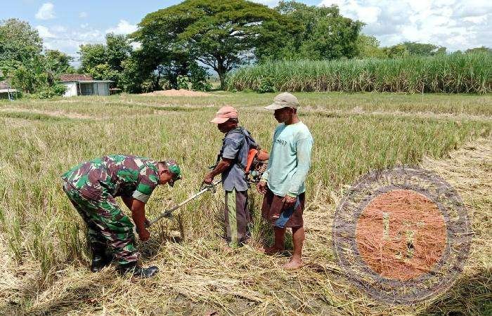 NGAWI lintasjatimnews.com – Kegiatan pendampingan dalam sektor Ketahanan pangan yang dilakukan oleh Babinsa Posramil Gerih Kodim 0805/Ngawi Sertu Ali Mustofa bersama sama petani melaksanakan pemotongan jerami padi di sawah milik Bpk. Junaidi di Desa Guyung Kecamatan Gerih Kabupaten Ngawi, Rabu (24/04/2024).