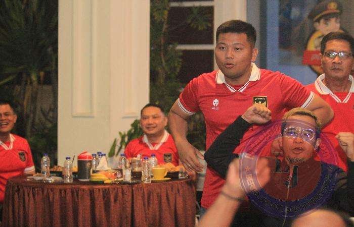 Serunya Nobar Timnas Indonesia Vs Korsel di Halaman Polres Pasuruan, Bisa Dapat Doorprize Lur !