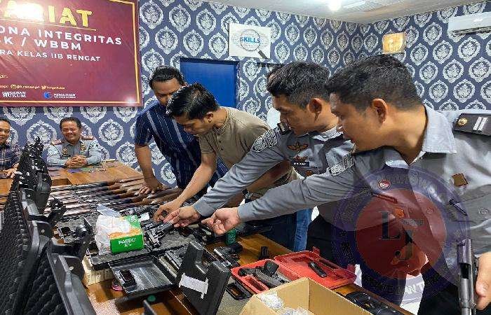 “Satu persatu senjata api dan dokumen dikeluarkan untuk dicek, termasuk amunisi yang tersedia. Al hasil semuanya berjalan sesuai SOP yang ada,” kata Kepala Rutan Rengat, Julius Barus didampingi Kepala Kesatuan Pengamanan Rutan (KPR), Wan Rezwanda, menjawab wartawan di kantornya.