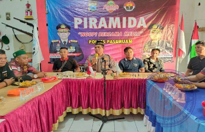 PASURUAN lintasjatimnews.com – Guna memelihara Keamanan dan Ketertiban Masyarakat (Harkamtibmas), Polres Pasuruan melalui Kasi Humas Polres Pasuruan Iptu Bambang Sugeng Hariyadi, S.Sos. ajak Ngopi bareng dengan sejumlah awak media dengan tema Ngopi Bareng Media (Piramida), yang bertempat di Sasana Baret Fighter, Dusun Kecepek, Desa Sengon agung, Kecamatan Purwosari, Kabupaten Pasuruan. Selasa (30/4/2024) sore.