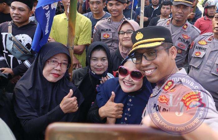 Sesekali berdialog dengan para massa guna menyampaikan pesan-pesan agar menjaga situasi tetap aman dan kondusif.