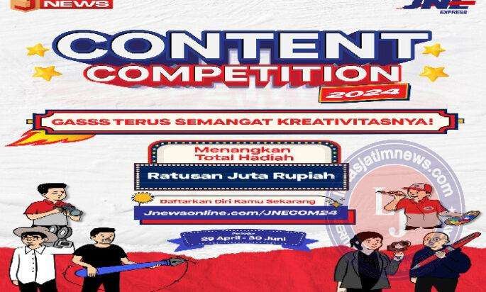 JNE Content Competition 2024 kembali di gelar pada 29 April hingga 30 Juni 2024. Menginjak tahun ke 11, ajang ini menyungsung tema “Gasss Terus Semangat Kreativitasnya!” yang dimaknai sebagai Energi, Semangat, Maju dan Inovasi menemani perjalanan JNE lebih dari 3 dekade. Peserta dapat melakukan pendaftaran dan persyaratan dalam kompetisi yang akan dilakukan melalui link berikut https://jnewsonline.com/jnecom24/.