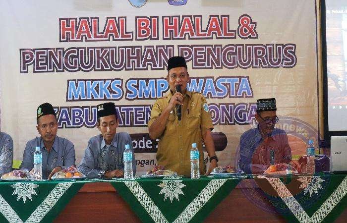 LAMONGAN lintasjatimnews.com – Kepala Dinas Pendidikan Kabupaten Lamongan (Kadisdik Kabupaten Lamongan), Ir H Munif Syarif, MM mengahadiri Halal Bi Halal dan mengukuhkan Pengurus Baru Periode 2024-2028 MKKS (Musyawarah Kerja Kepala Sekolah) SMP Swasta Kabupaten Lamongan, hariSelasa (25/1/2024).