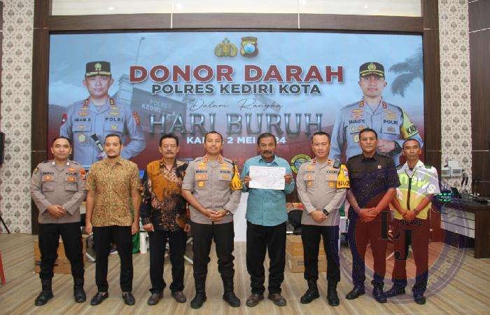 KEDIRI KOTA lintasjatimnews.com – Polres Kediri Kota Polda Jatim bersama Serikat Pekerja dan bekerja sama dengan PMI (Palang Merah Indonesia) Kota Kediri menggelar donor darah dalam rangka memperingati Hari Buruh Internasional, Kamis (2/5/2024).