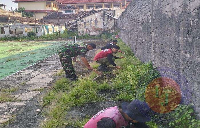 Babinsa Kelurahan kepatihan Kulon Koramil 04/Jebres, Kodim 0735/Surakarta melaksanakan karya bakti bersama warga dalam pembersihan lingkungan gorong-gorong di Lapangan Tenis Kelurahan Kepatihan Kulon Kecamatan jebres, Sabtu (04/05/2024).