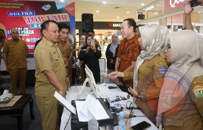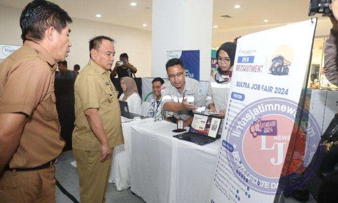 KENDARI lintasjatimnews.com – Penjabat (Pj.) Gubernur Sulawesi Tenggara (Sultra) Andap Budhi Revianto meninjau pelaksanaan Pameran Bursa Kerja tahun 2024, bertempat di Atrium Lippo Plaza Kendari, Selasa (07/05/24).
