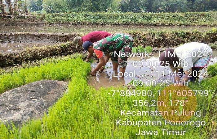Seperti yang dikerjakan Sertu Edi Purwanto anggota Koramil Tipe B 0802/17 Pulung, Kodim 0802/Ponorogo yang bertugas menjadi Babinsa Karangpatihan hari ini melakukan pendampingan petani Desa Karangpatihan, Kecamatan Pulung, Kabupaten Ponorogo.