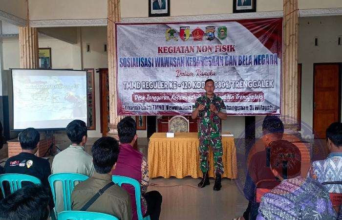 TRENGGALEK lintasjatimnews.com – Pagi ini, kegiatan TMMD ke-120 di Trenggalek tidak hanya difokuskan pada sasaran fisik, namun juga memperhatikan aspek non fisik. Salah satu kegiatan non fisik yang dilaksanakan adalah penyuluhan Wawasan Kebangsaan dan Bela Negara yang berlangsung di Balai Desa Tanggaran, Kecamatan Pule, Kabupaten Trenggalek, Minggu (12/5/2024).