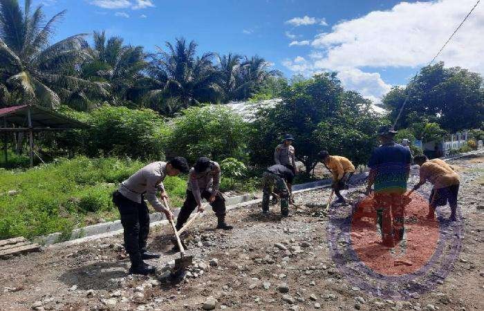 Sementara anggota TMMD bersama warga setempat telah aktif meratakan ruas jalan sebagai persiapan untuk pengecoran, kehadiran anggota polisi menambah kekuatan tenaga dan semangat dalam upaya merampungkan proyek ini dengan hasil yang optimal.