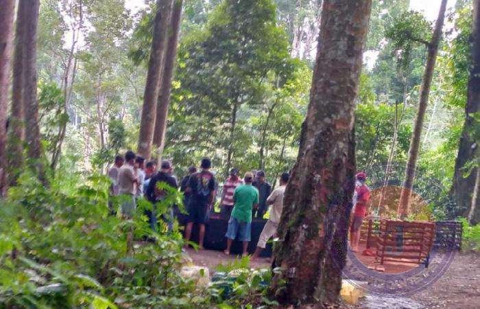 Di tengah tengah hutan itu, para pelaku menyediakan kursi, kandang ayam, pagar bambu sebagai batas arena perjudian sabung ayam.