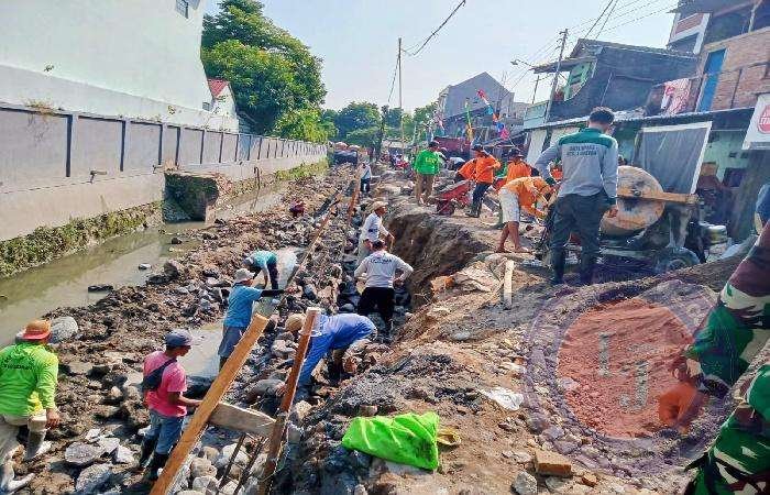 Danramil 01/Laweyan Kodim 0735/Surakarta Kapten Inf Tri Sakti Kristiyoso menegaskan siang ini Rabu (15/05/2024) dirinya bersama-sama dengan warga masyarakat bahu-membahu menyelesaikan pengerjaan sasaran fisik yakni perbaikan Talud Sungai di Jl. Nangka Raya RT 02 RW 9 Kelurahan Kerten Kecamatan Laweyan.