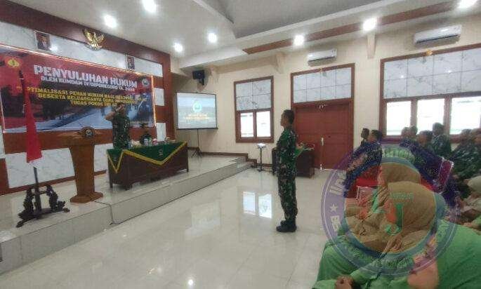 SURAKARTA lintasjatimnews.com – Dalam rangka meningkatkan kedisiplinan dan taat kepada hukum, sehingga dapat meminimalisir pelanggaran yang dilakukan oleh anggota, dimana dapat merugikan pribadi maupun satuan, anggota Kodim 0735/Surakarta beserta PNS dan Persit Kartika Candra Kirana Cabang L Dim 0735/Surakarta menerima penyuluhan hukum dari Tim Penyuluhan Hukum Kodam IV/Diponegoro.