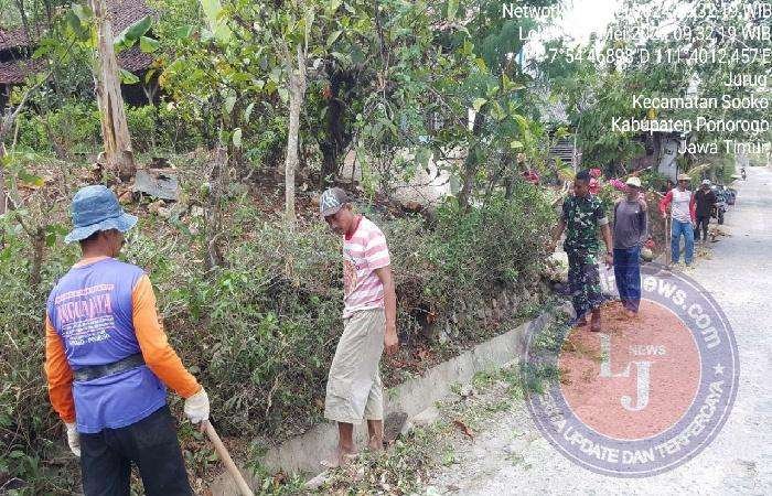PONOROGO lintasjatimnews.com – Koptu Suyanto anggota Koramil Tipe B 0802/18 Sooko, Kodim 0802/Ponorogo hari ini ikut kerja bakti bersama warga Dukuh Setumbal Desa Jurug Kecamatan Sooko Kabupaten Ponorogo, Minggu (19/05/2024).