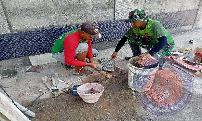 Kapten Inf Kurniawan Jayadi Selaku Perwira Pelaksanan TMMD menjelatkan saat ini anggota satgas dan warga melaksanakan pemasangan kermik diding ” Untuk pemasangan keramik dinding masjid ini, kami bersama masyarakat bergotong guna royong mempercepat pekerjaan, agar semua sasaran program TMMD ke-120 Kodim 0726/Sukoharjo dapat selesai tepat waktu,” terang Kapten Kurniawan.