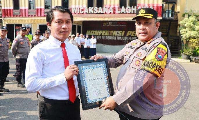 Selain itu, pengungkapan kasus tindak pidana, Kapolres juga memberikan penghargaan kepada Iptu Muhammad Prasetyo Kasat Reskrim Polres Pelabuhan Tanjung Perak bersama 24 anggotanya atas keberhasilan ungkap kasus tawuran Gangster.