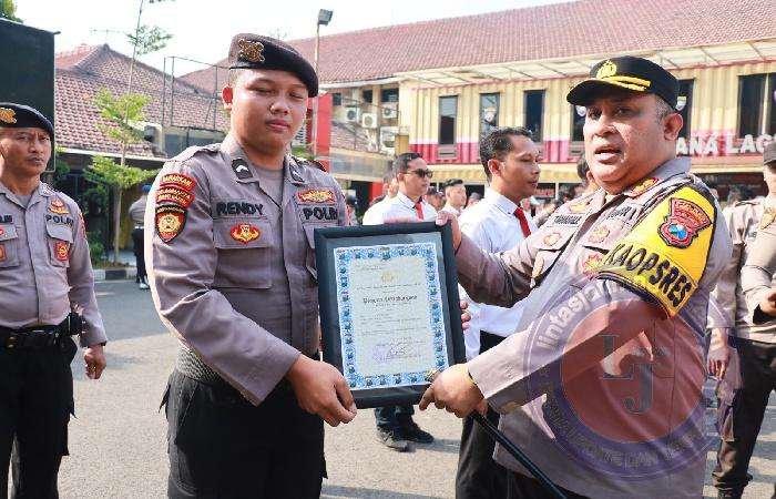 Kapolres menyampaikan ucapan terima kasih kepada anggota yang menerima penghargaan atas dedikasi dan loyalitas kepada Institusi Kepolisian