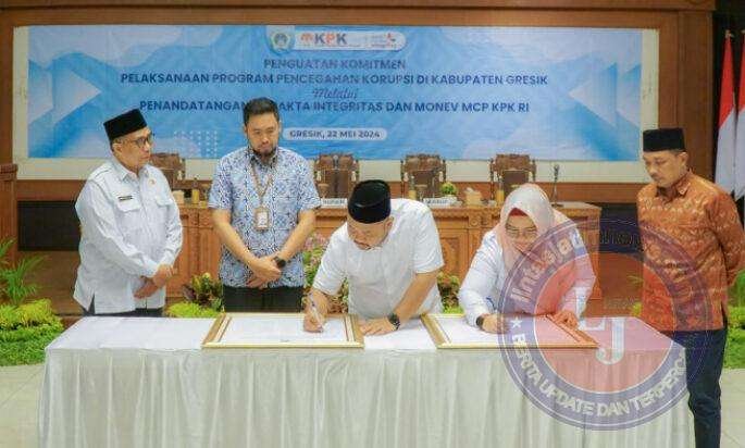 GRESIK lintasjatimnews.com – Pemerintah Kabupaten (Pemkab) Gresik melaksanakan penandatanganan pakta integritas bersama dengan Komisi Pemberantasan Korupsi (KPK). Kegiatan yang digelar bersamaan dengan Monev MCP (Monitoring Centre for Prevention) ini bertujuan untuk meningkatkan integritas dan memperkuat komitmen dalam pencegahan korupsi.