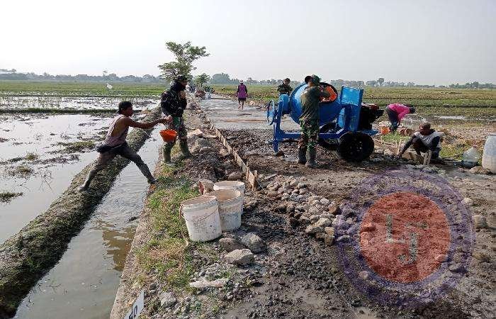 “Secara teknis pembuatan talud ini sangat dibutuhkan dan dibuat dalam rangka memperkuat badan jalan ditengah sawah ini agar tidak ambles saat mendapatkan beban kendaraan, karena lalu lalang kendaraan dengan beban membawa hasil panen, terutama mencegah longsoran bahu jalan agar tidak menghambat saluran irigasi lahan persawahan,” ungkap Serma Siswanto Babinsa Wirun.