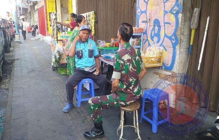 SURAKARTA lintasjatimnews.com – Dalam menjalin komunikasi antara Aparat Komando Kewilayahan dengan masyarakat bisa dilakukan di mana saja. Seperti yang dilakukan Bati Komsos Koramil 03/Serengan Kodim 0735/Surakarta Serma Fitalis Erwan melakukan Komunikasi Sosial (Komsos) dengan juru Parkir Bpk.Tardi bertempat di jl.Dr Rajiman RT. 03 RW.