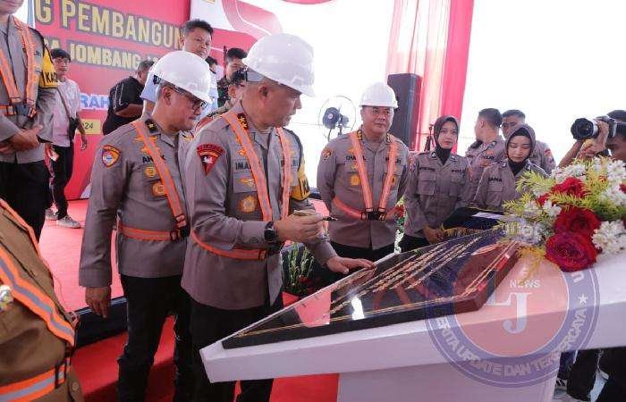 JOMBANG lintasjatimnews.com – Kapolda Jawa Timur Irjen Pol Imam Sugianto bersama Karojemengar Srena Polri, Brigjen Pol. Andik Setiyono, serta Pejabat Utama Polda Jatim dan Forkopimda Kabupaten Jombang, melakukan ground breaking pembangunan rumah sakit Bhayangkara Jombang, di Jl. KH. Romli Tamim, Jombang. Selasa (28/5/2024).