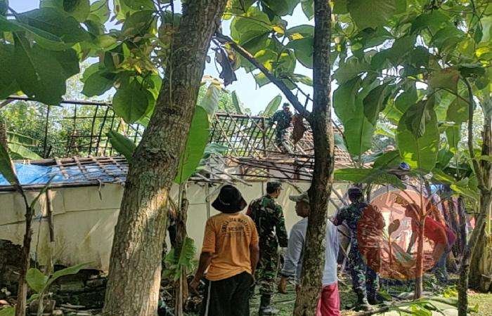 NGAWI lintasjatimnews.com – Anggota Koramil 02/Paron Kodim 0805/Ngawi Pelda Imam bersama lima orang anggota membantu bedah rumah tidak layak huni yang di laksanakan oleh BAZNAS milik Mbah Jami di Desa Ngale Kecamatan Paron, Kamis (30/05/2024).