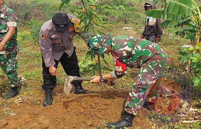 Koramil 1615 Haurgeulis Laksanakan Karya Bakti Penanaman Pohon di Lahan Perkebunan Desa Mekarwaru