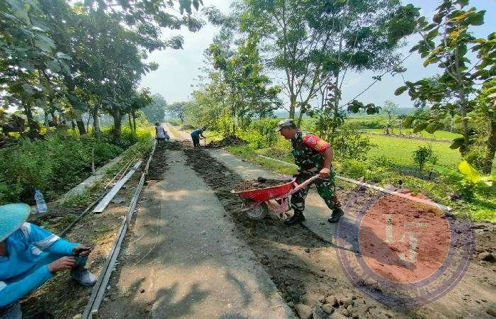 Upaya Menjaga Fasilitas Umum, Babinsa Bantu Perbaikan Jalan