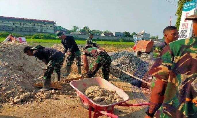 SUKOHARJO lintasjatimnews.com – Rabat Beton Jalan sepanjang 650 meter lebar 4 meter merupakan akses jalan masyarakat desa wirun salah satu sasaran fisik Program TMMD Reguler Ke-120 Kodim 0726/Sukoharjo sudah mencapai progres 90 %, Jum’at (31/05/2024).