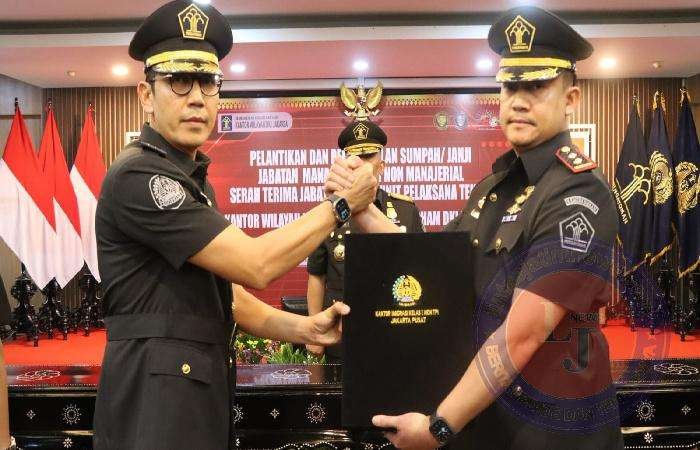 JAKARTA lintasjatimnewsKepala Kantor Wilayah (Kakanwil) Kementerian Hukum dan HAM (Kemenkumham) DKI Jakarta, R. Andika Dwi Prasetya melantik dan mengambil sumpah/janji jabatan Manajerial dan Non Manajerial serta memimpin Serah Terima Jabatan (Sertijab) Kepala Unit Pelaksana Teknis, Kamis (30/05/2024). Bertempat di Aula Kantor Wilayah.