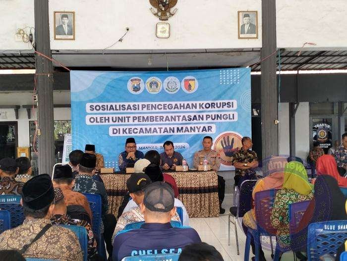 “Sosialisasi Saber Pungli di Kecamatan Manyar bertujuan untuk memberikan pemahaman kepada aparatur pemerintah dan masyarakat tentang pungli dan bagaimana cara mencegahnya. Kegiatan ini diharapkan dapat meningkatkan disiplin aparatur negara dalam memberikan pelayanan publik yang bebas dari pungli dan membangun budaya anti pungli dan korupsi di masyarakat,” bebernya.