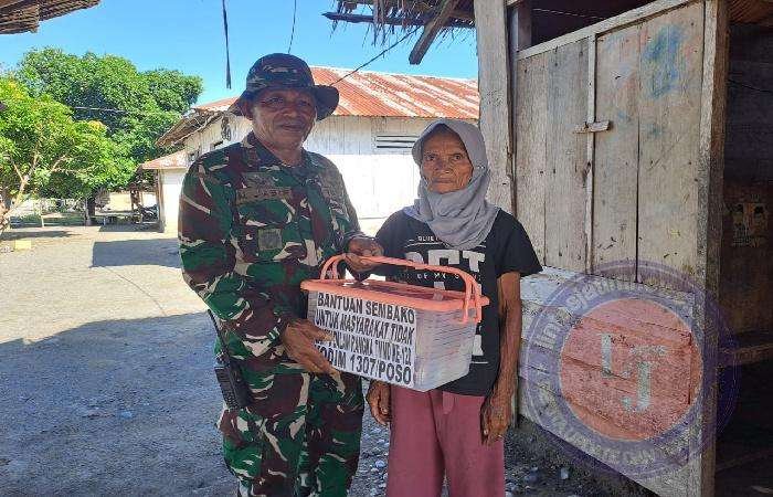 Danramil 1307-10/Lore Utara, Kapten Inf Muh Jabir, dalam sambutannya menyampaikan harapannya agar bantuan sembako tersebut dapat meringankan beban hidup warga penerima.