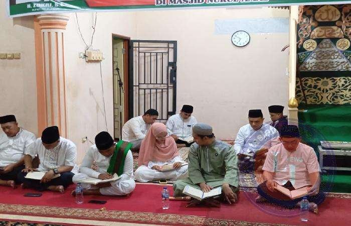Dalam sambutannya Bupati Zukri menyampaikan bahwa program magrib mengaji bersama dimesjid ini adalalah untuk meningkatkan kecintaan kita terhadap al-qur’an, selain itu agar silaturahmi dtengah-tengah masyarakat selalu terjaga dengan baik, sehingga masyarakat bisa saling kenal mengenal diantara sesama, dan juga berkenalan dengan Camat dan juga Lurah, sehingga Camat dan Lurah bisa mengetahui persoalan-persoalan yang ada ditengah-tengah masyarakat.