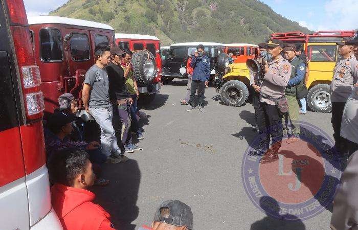 PROBOLINGGO lintasjatimnews.com – Polres Probolinggo Polda Jatim bersama pihak Taman Nasional Bromo Tengger Semeru (TNBTS) memberikan himbauan dan sosialisasi kepada para wisatawan pengunjung Gunung Bromo, driver Jeep hartop serta komunitas wisata ojek kuda.